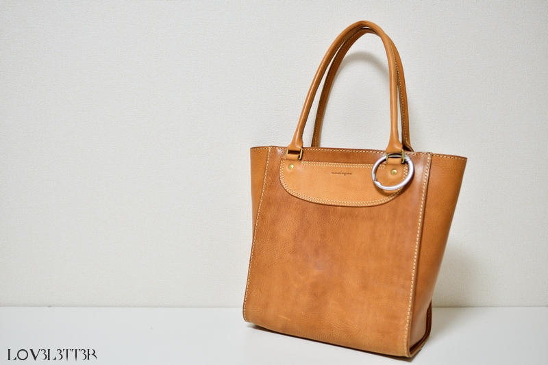 ミッスーリというイタリアンレザーを使ってるそうで、経年変化で飴色になるそうです。色はキャメルとブラウンの二種類があったんですが、明るいキャメルにしました。約5万と高価ですが、質感もデザインも最高です。