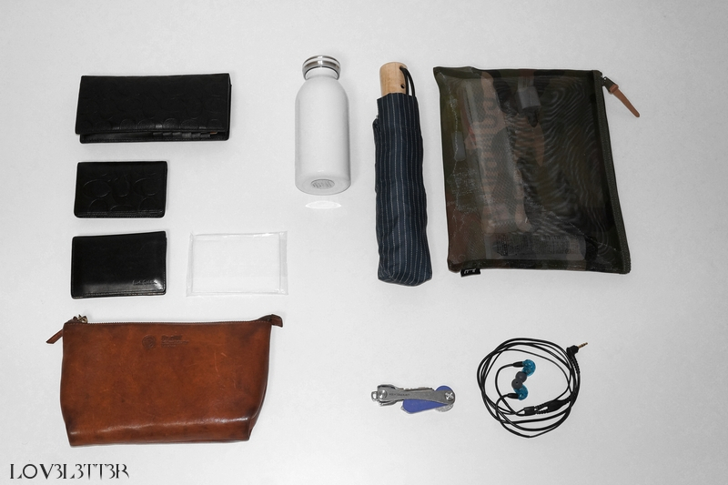 D610がなくなって、代わりに名刺入れと折り畳み傘、歯ブラシやヘアジェルの入ったHerschel Supplyのポーチ、出先では更に図面が入ったファイルに筆箱、と物が増えますが、これでも大丈夫です。