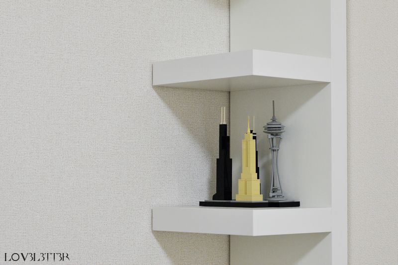 最初の写真で部屋の右奥に映ってる棚はLACKというウォールシェルフで、収納とディスプレイが両立できてGOODです。南船橋のIKEAで10Kくらいで買いました。