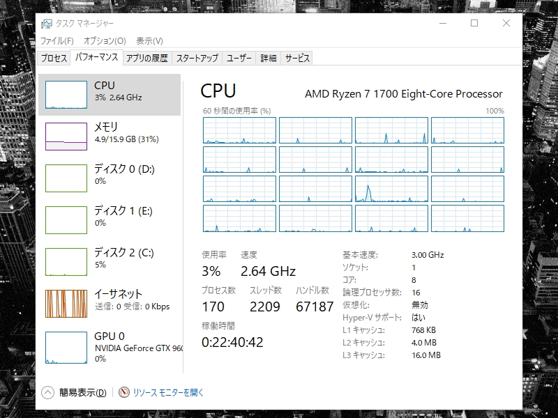 i7 3770K(4コア8スレッド)を買ったときにタスクマネージャがCPU8つ表示で感動