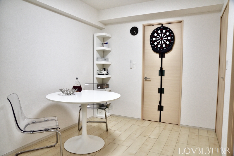 入口のドアにGRAN BOARD dashをつけました。Bluetoothでスマホと連携させると結構本格的に遊べます。
