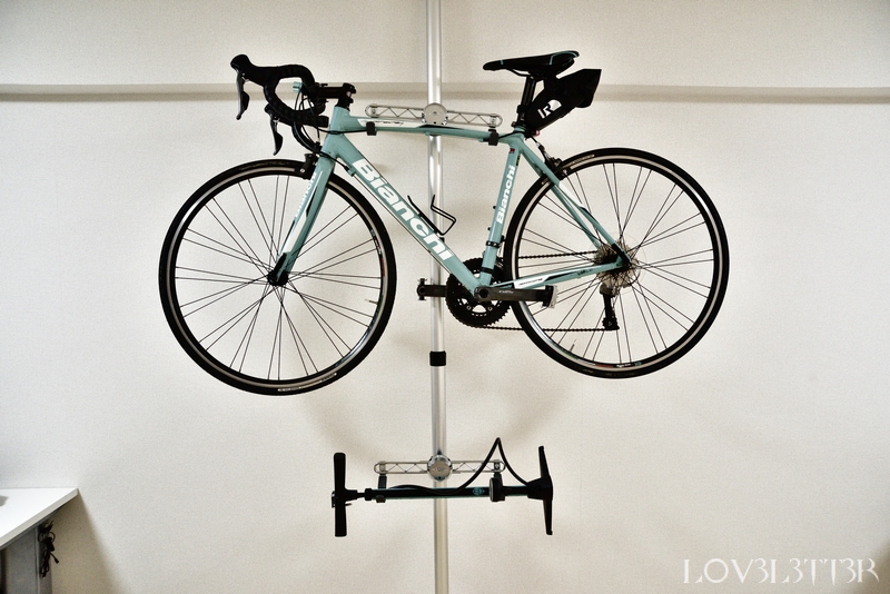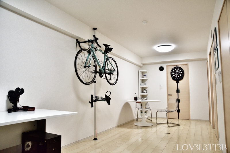 ロードバイクはMINOURA バイクタワー20を使って壁掛けにしました。