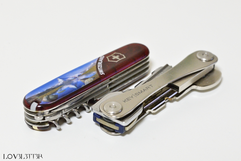 ビクトリノックスとキースマート、2つ並べてみるとこんな感じです。用途はナイフとカギなので全然違いますが、形状や使い勝手がほとんど同じでなんとなく似てる気がします。