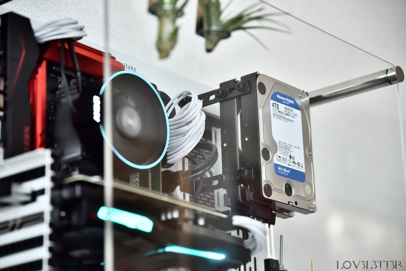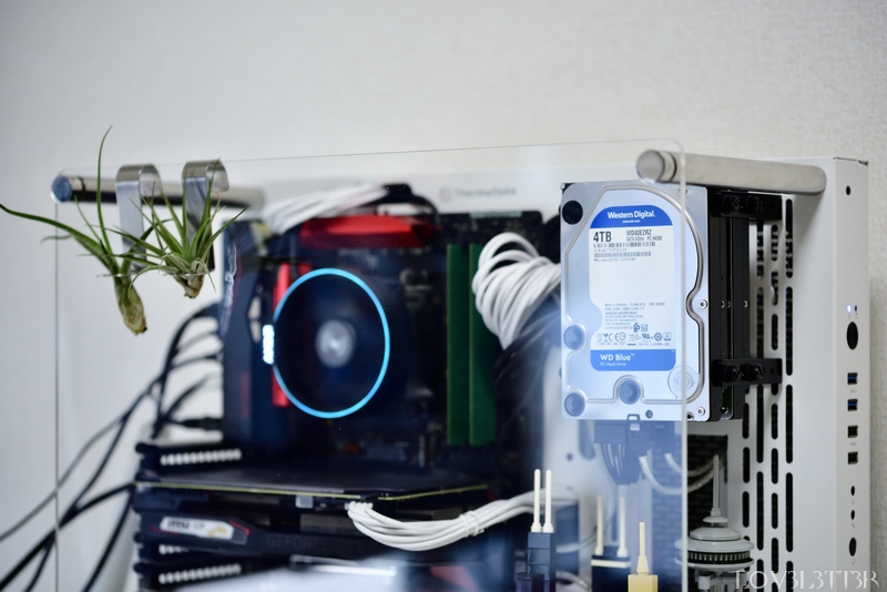 小学校の頃、父親が組んでくれたPCにMaxtorのHDDが入っていたせいか、Seagateの方が好きだったんですが、最近のSeagateのHDDは3.5インチでも薄型になってしまって、今回みたいに見せようとすると貧相なので、Western Digital のWD Blueにしました。(これって一昔前に青キャビアとか呼ばれてたやつでしょうか・・?)