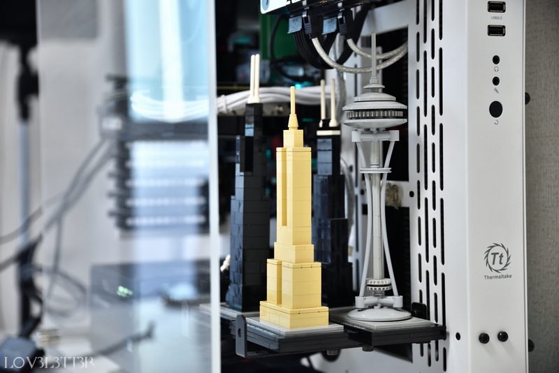 下側にもステーを増設するつもりですが、とりあえず4TB×4枚で16TBあれば当分は足りそうなので、お気に入りのLEGOを飾るスペースとしました。