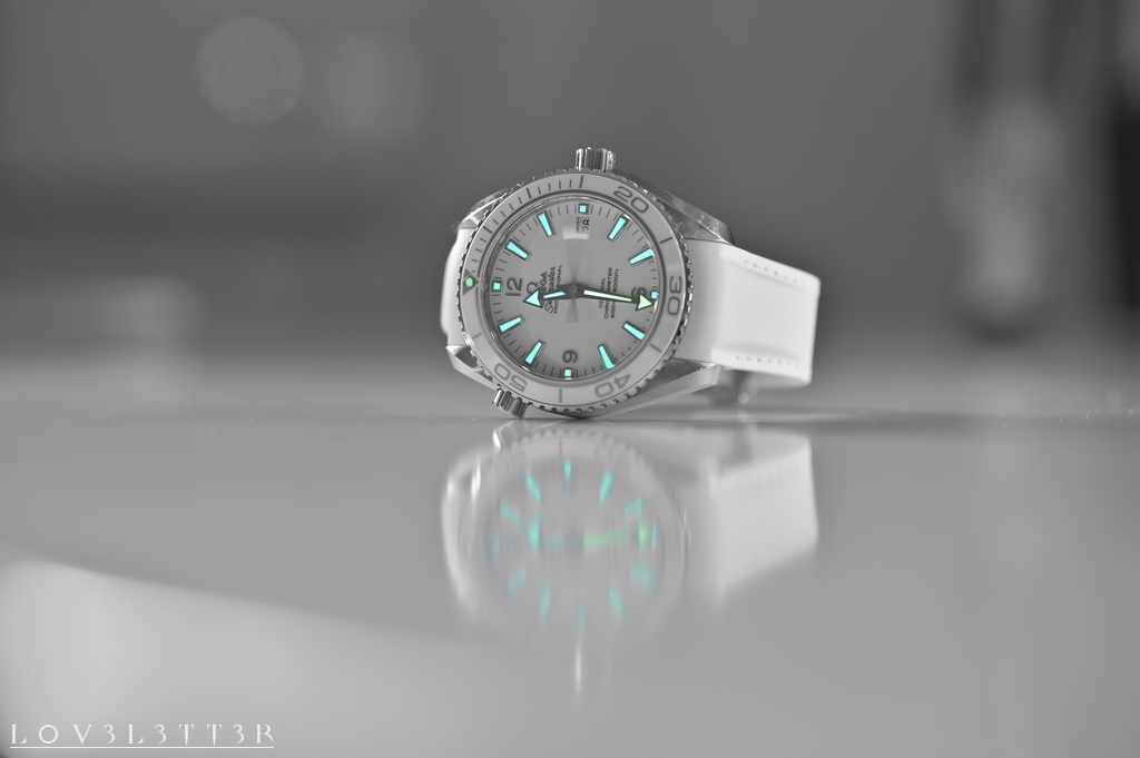 少し前ですが、気分転換でオメガ シーマスター プラネットオーシャンのベルトを純正の白ラバーに変えました。